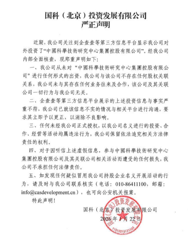 国科(北京)投资发展有限公司严正声明