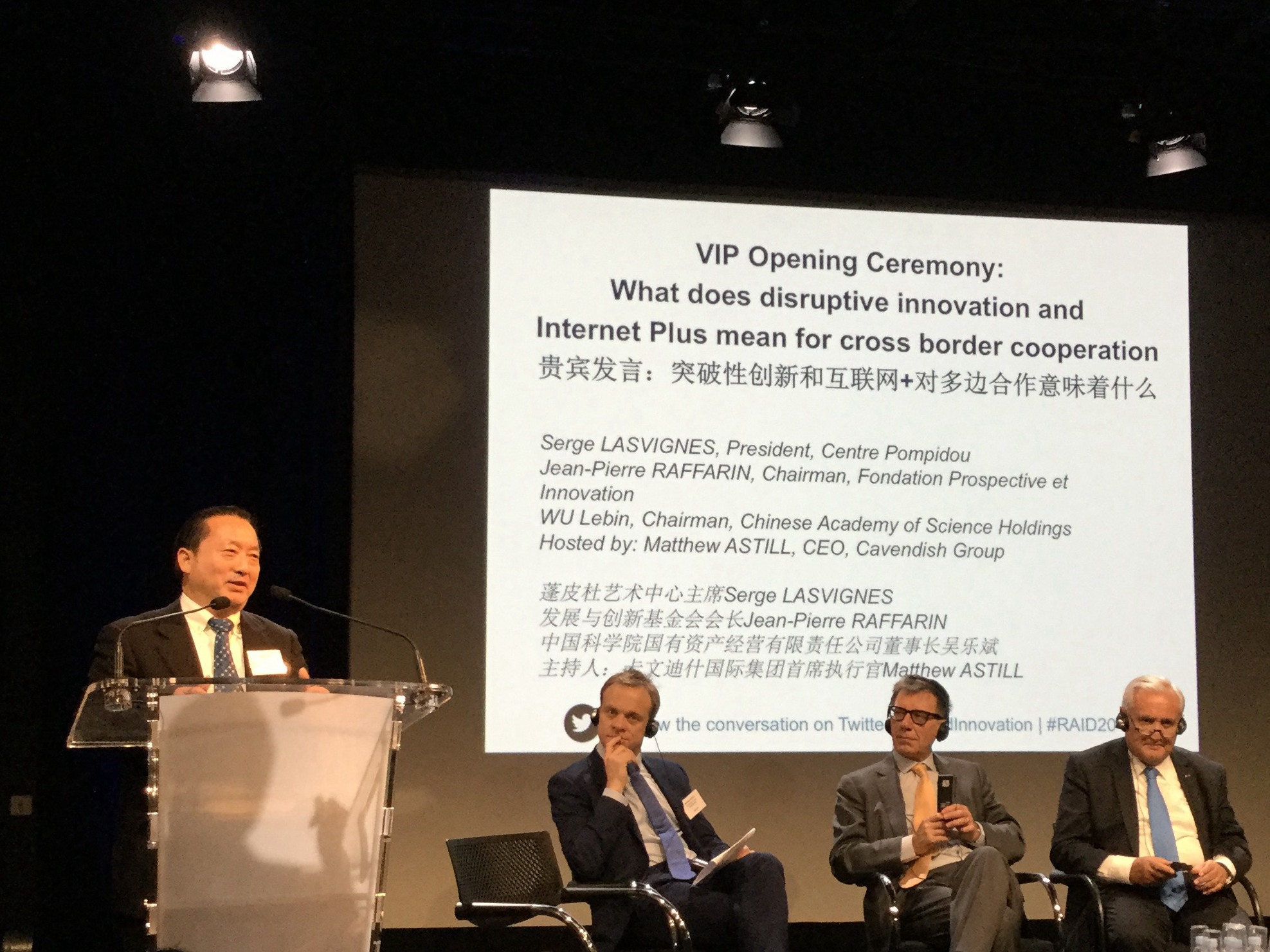 3月14日,国科控股联合英国Cavendish集团、法国拉法兰基金会在法国巴黎拉开了RAID大会的序幕。当天上午,中科院京区企业党委书记、国科控股董事长吴乐斌、法国前总理拉法兰(Jean-Pierre Raffarin)作为大会联席主席发表了主题演讲。前国际能源署理事、法国电力集团EDF首席技术官等嘉宾以突破性创新、中欧经济发展为主题,围绕机器人、人工智能、物联网、大数据、新能源、智慧城市等领域进行了讨论。