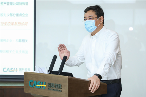 张涛在讲话中肯定了国科控股及院属企业在过去一年里取得的成绩。张涛指出,国科控股要深刻把握当前新形势、新任务、新要求,不忘“助力科技创新”的初心,牢记“实现资本增值”的使命,努力实现改革、创新和经营发展目标。张涛强调,首先要全面加强院属企业党的建设,坚持将“一岗双责”落到实处,持续加强和改进“四会一层”法人治理体系建设和“三重一大”事项决策制度建设。二是抓紧编制国科控股三年发展规划,并要着力处理好“主业和副业”、资产规模“大和强”、发展速度“快和稳”以及投资企业“多和少”等几个重要关系。三是在今年的工作中既要毫不松懈继续抓好疫情防控,又要有序推动企业复工复产提速扩面,积极破解复工复产中的难点、堵点,一方面增强“免疫力”,做好风险应对方案及落实,另一方面“强筋壮骨”,寻求发展新机遇。四是扎实推进院所企业改革工作,以突出科技创新主业,聚焦新兴产业培育与发展为特色,加快构建从管企业、管资产到以管资本为主的国有资产监管体制,确保完成中央提出的国资监管新任务。